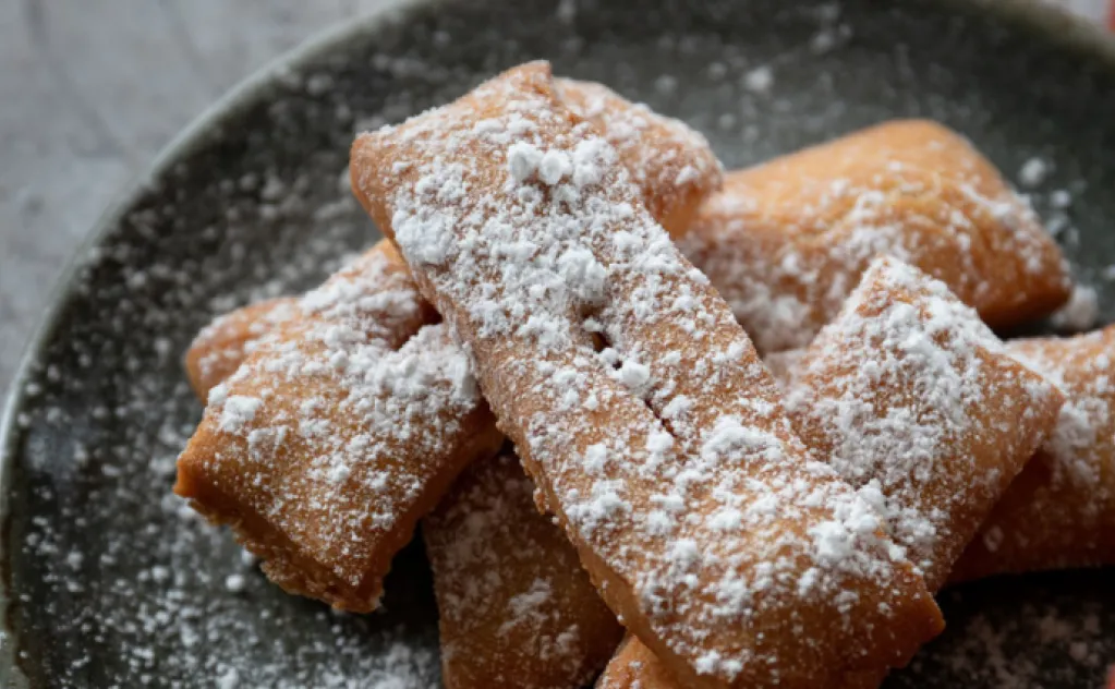 Faire frire dans un bain d’huile jusqu’à ce que les bugnes aient blondi.